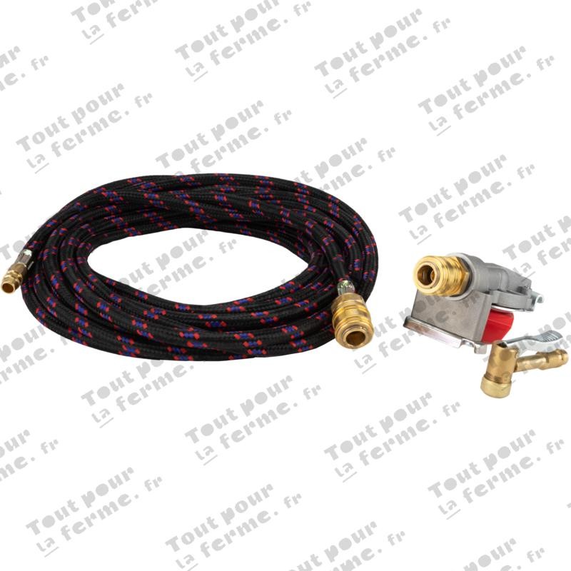 | Caractéristiques | tuyau longueur 8 m, tête d'attelage et levier avec soupape |